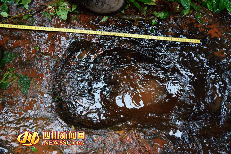 隨后,專家組對(duì)大石鄉(xiāng)新陽村桫欏溝恐龍足跡進(jìn)行考擦,龍井和新陽兩地相距直線距離約1500米。繼上次發(fā)現(xiàn)獸腳類恐龍的巖石上,再次發(fā)現(xiàn)蜥腳類恐龍。“這里保存著極好的獸腳類恐龍行跡。”獸腳類恐龍是一種兇猛的肉食性恐龍,是當(dāng)?shù)匕l(fā)現(xiàn)的蜥腳類足跡和鳥腳類足跡的造跡者的天敵。從足